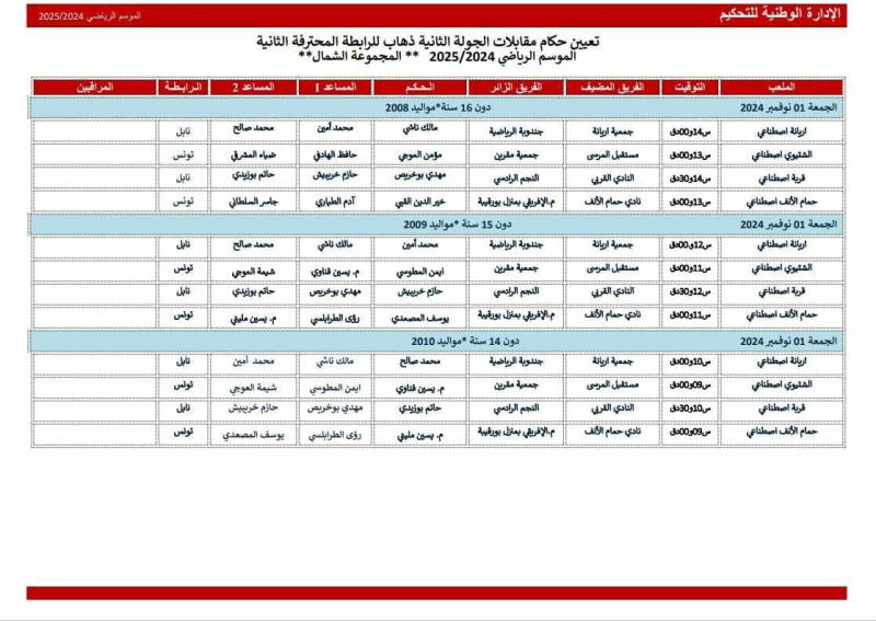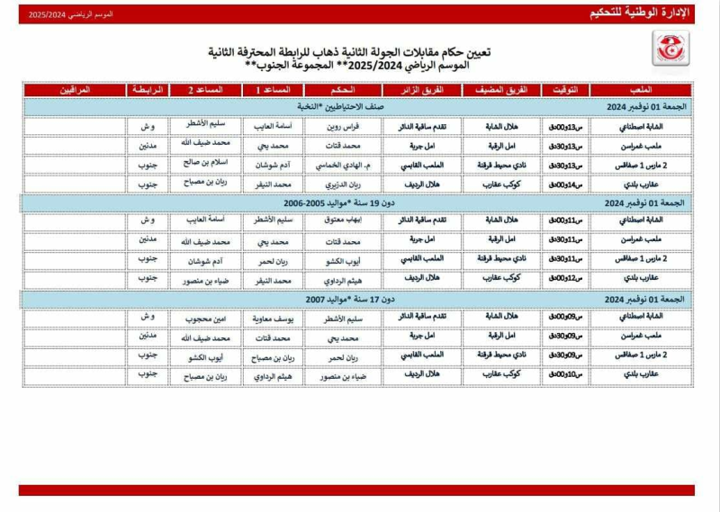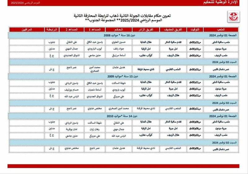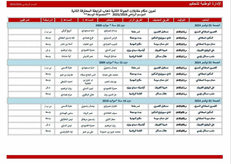 رياضة: نشرت الادارة الوطنية للتحكيم اليوم الخميس 31 أكتوبر 2024 ، قائمة تعيينات حكام مقابلات الجولة الثانية ذهاب للرابطة المحترفة الثانية (شمال .. وسط ..جنوب) قراءة المزيد نشرت الادارة الوطنية للتحكيم اليوم الخميس 31 أكتوبر 2024 ، قائمة تعيينات حكام مقابلات الجولة الثانية ذهاب للرابطة المحترفة الثانية (شمال .. وسط ..جنوب)مجددا/ الترجي يراسل الإدارة الوطنية للتحكيمدعوة حكام للمثول أمام الادارة الوطنية للتحكيمجامعة كرة اليد تُعلن تركيبة الإدارة الوطنية للتحكيمالمزيد من الأخبار