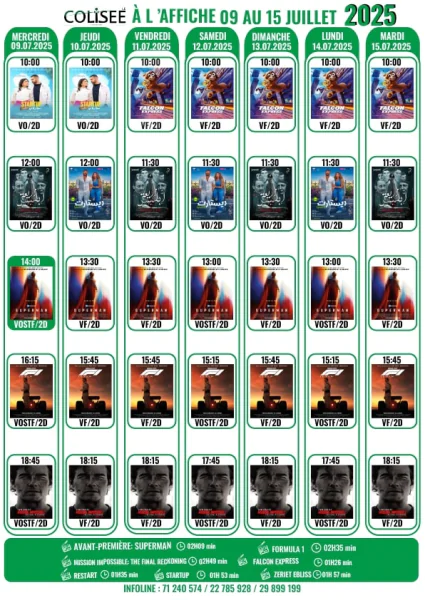 حاليا في قاعات السينما: تضع قاعة سينما الكوليزي على ذمة متابعي السينما التونسية والعالمية برنامجا متنوعا الى غاية يوم 15 جويلية 2025.