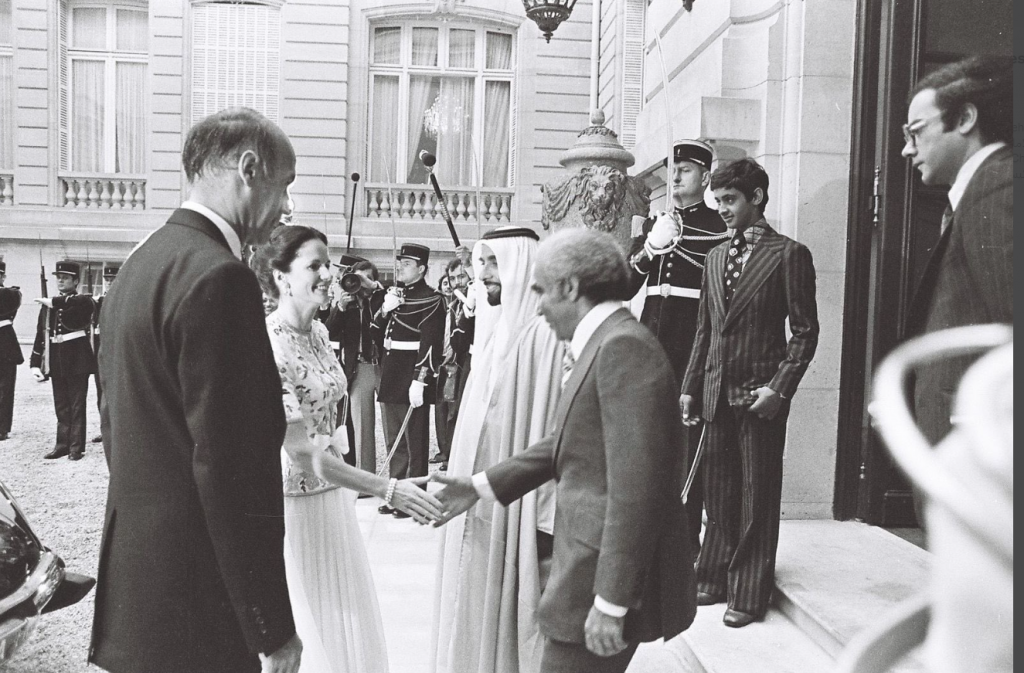 ويظهر الشيخ محمد بن زايد آل نهيان (الرئيس الحالي لدولة الإمارات) وهو يقف خلف والده الذي كان يقف أمام الرئيس الفرنسي آنذاك فاليري جيسكار ديستان وزوجته.