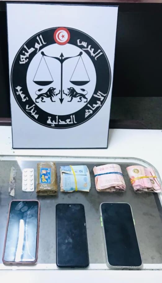 تمكنت وحدات منطقة الحرس الوطني بمنزل تميم معززة باسناد عملياتي من إقليم نابل من تفكيك شبكة مختصة في ترويج المخدرات وإلقاء القبض على 04 أنفار أين تم حجز لديهم صفيحة من مخدر القنب الهندي، كمية من الأقراص المخدرة ، وسائل يقع استعمالها في ترويج المخدرات ومبلغا ماليا متأتيا من عائدات الترويج .