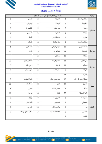 وطنية: نشر المعهد الوطني للرصد الجوي قائمة لكميات الأمطار المسجلة خلال 24 ساعة الفارطة قراءة المزيد نشر المعهد الوطني للرصد الجوي قائمة لكميات الأمطار المسجلة خلال 24 ساعة الفارطة (من الساعة 07:00 ليوم الخميس 06 إلى الساعة 07:00 ليوم الجمعة 07 مارس 2025) :أعلاها في عين دراهم كميات أمطار يوم 28 نوفمبركميات أمطار يوم 21 نوفمبر 2025أعلاها في جربة.. كميات أمطار يوم 20 نوفمبر 2025المزيد من الأخبار