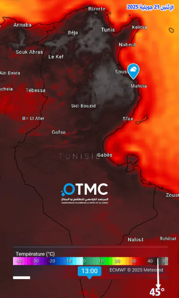 كشف المرصد التونسي للطقس والمناخ ان فترة حارة ستشهدها البلاد بين السبت و الثلاثاء 19-22 جويلية 2025 اذا ستكون حرارة أربعينية بعدة مناطق شمالية ووسطى وجنوبية.