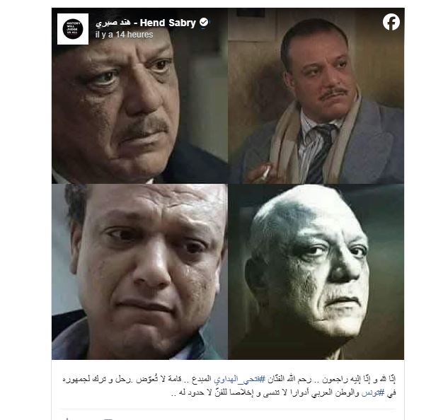 كما نعى الممثل الكوميدي خالد بوزيد الراحل قائلا “نودعك صديقي العزيز الفنان المبدع العربي فتحي الهداوي …خسرتك الساحة الفنية العربية ..خسرنا عملاق الدراما”.