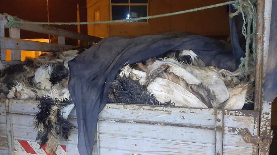 آلاف علب السجائر المهربة في شاحنة محملة بجلود الخرفان والماعز (صور)