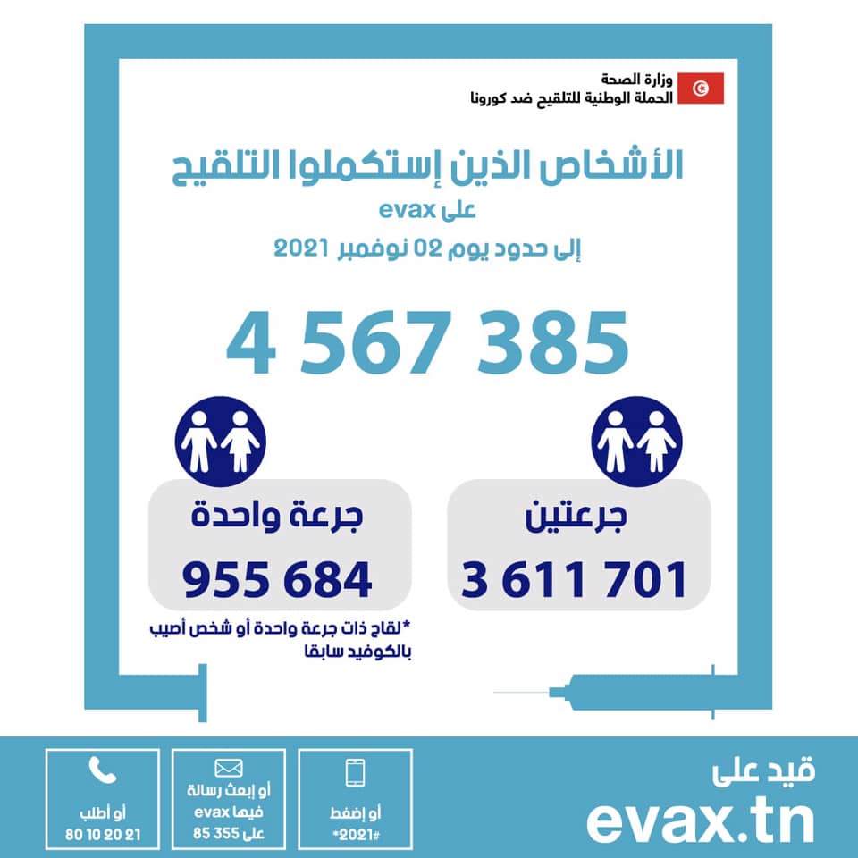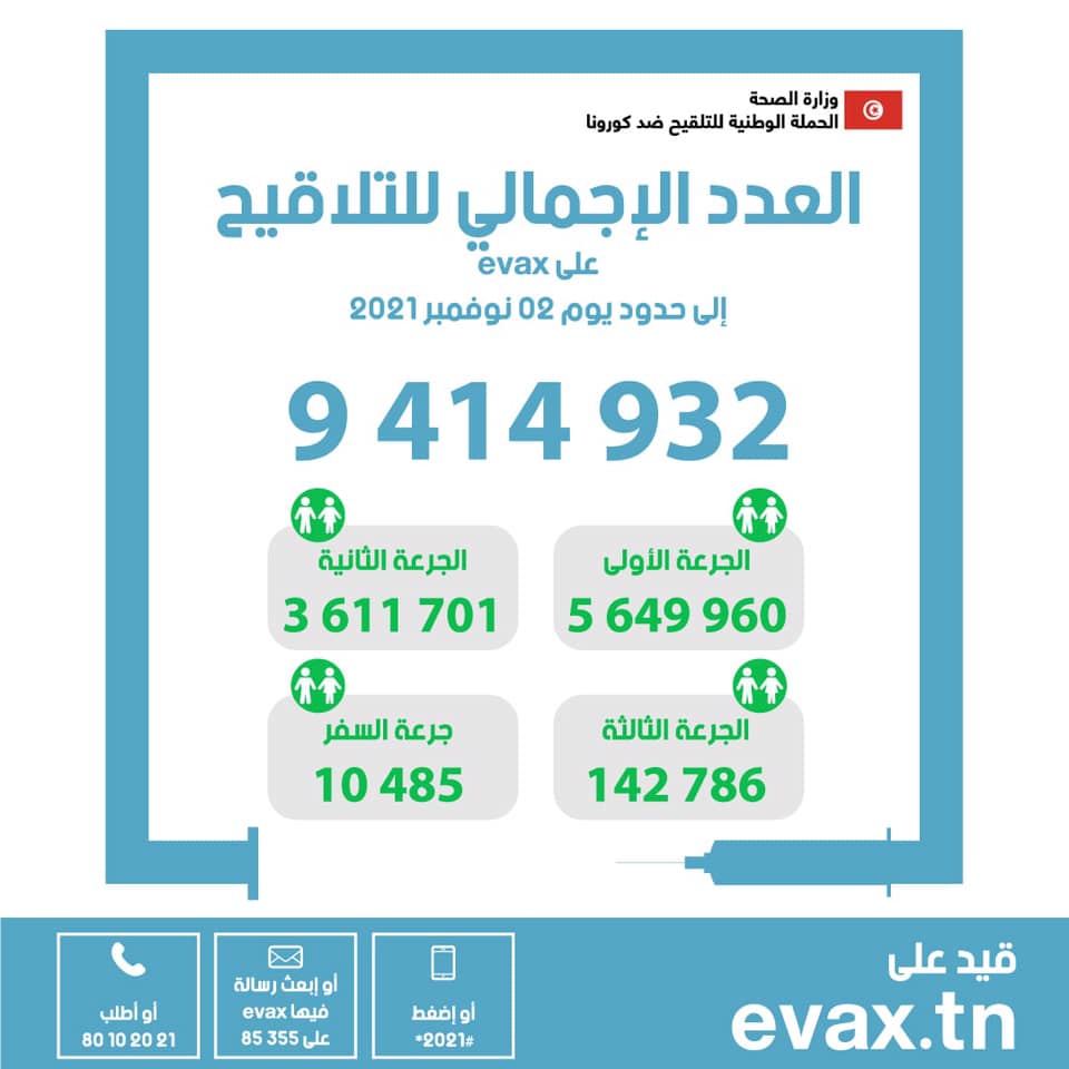 أعلنت وزارة الصحة اليوم الاربعاء أنّ العدد الجملي للتلاقيح بلغ 9414932 تلقيحا.