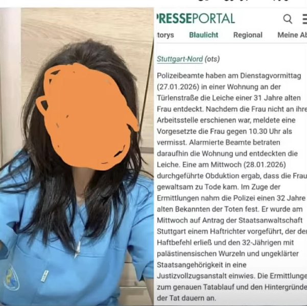 عثرَت الشرطة الألمانية صباح الثلاثاء 27 جانفي 2026 على جثة ممرضة تونسية تبلغ من العمر 31 عامًا داخل شقتها في شارع تورلن (Türlenstraße) بحي شتوتغارت-نورد، بعد أن تخلّفت عن الحضور إلى عملها في مستشفى شتوتغارت.