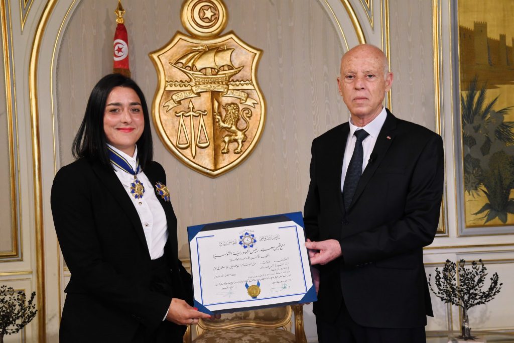 وتوجّهت بالشكر إلى رئيس الجمهورية قيس سعيّد على استقباله لها وتوسيمها بقصر قرطاج.
