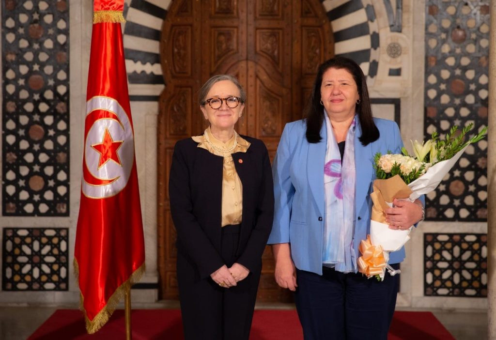 ستقبلت رئيسة الحكومة نجلاء بودن رمضان مساء اليوم الخميس، بقصر الحكومة بالقصبة، الكاتبة العامة للحكومة سارة رجب وذلك بمناسبة احالتها على التقاعد.