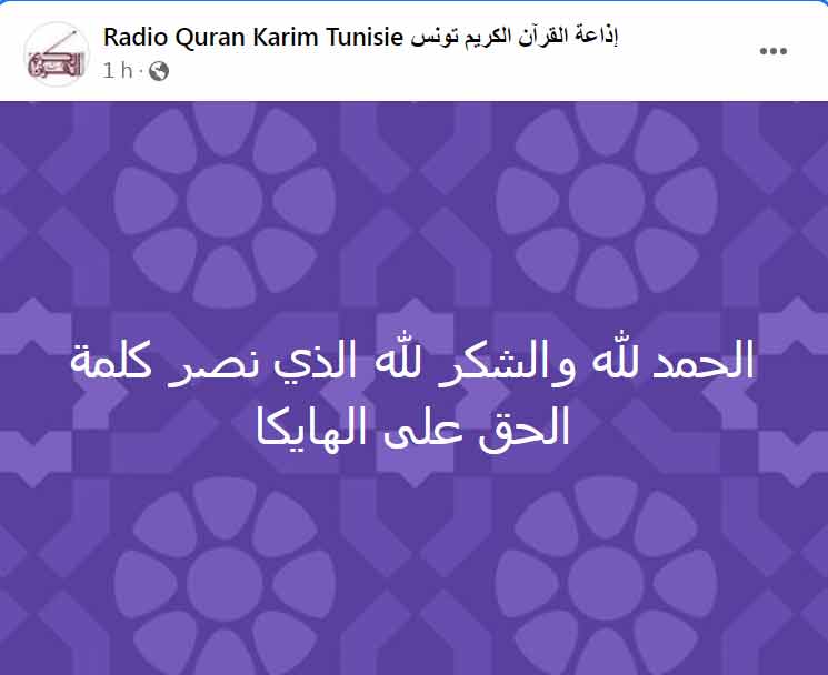 ونشرت الإذاعة تدوينة على فيسبوك قالت فيها “الحمد لله والشكر لله الذي نصر كلمة الحق على الهايكا”.