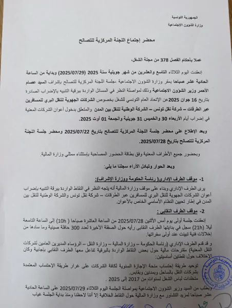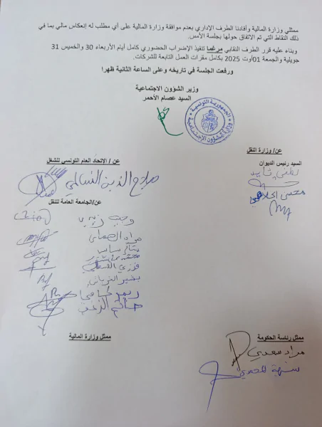 وأكدت الجامعة أنّ هذا القرار يأتي دفاعًا عن المرفق العمومي للنقل، وصونًا لحقوق الأعوان والعملة، في ظلّ سياسة المماطلة والتجاهل التي أصبحت نهجًا معتمدًا من الطرف الحكومي.