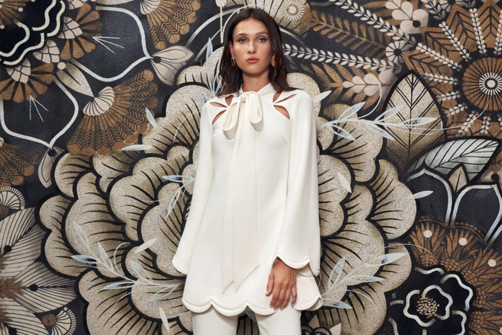 لإطلالة راقية وأنيقة، يمكنك ان تختاري هذا الطقم من تصميم زهير مراد Zuhair Murad والذي يتميّز بتصميمه المبتكر. يتألف الطقم من سراوال قصير وتونيك مزيّن بعقدة على الرقبة مع بعض الأماكن المكشوفة عند الكتفين على شكل الأزهار. يمكنك أن تزيّني هذا الطقم بإكسسوارات باللون الذهبي لتزيدي من إشراقة إطلالتك، أو أن تختاري إكسسوارات باللون الأحمر لتمنحيها بعض الجرأة.