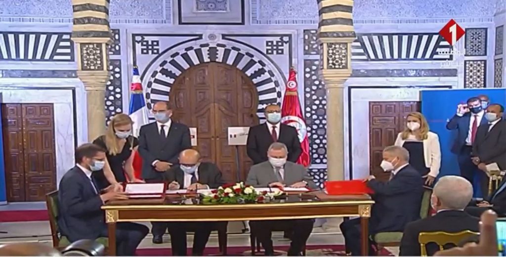 تم اليوم بمقر رئاسة الحكومة بالقصبة إمضاء عدد من الاتفاقيات بين تونس وفرنسا بمناسبة انعقاد المجلس الأعلى للتعاون بين البلدين وبحضور كل من رئيس الحكومة هشام المشيشي والوزير الاول الفرنسي جان كاستاكس .