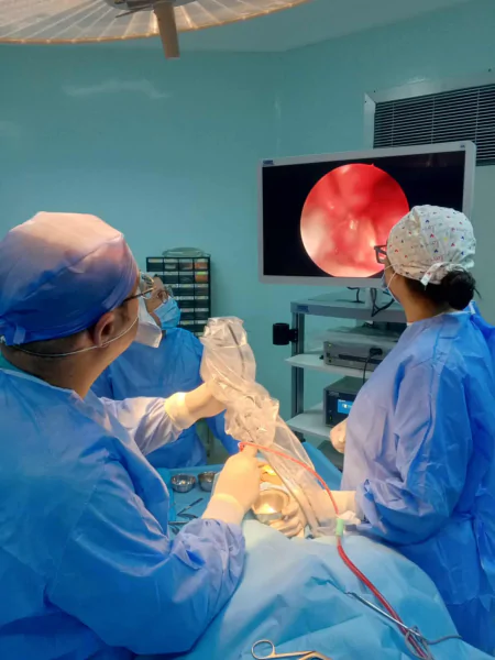 وتم انجاز هذا التدخل، الذي من شأنه مزيد تقريب الخدمات الصحية من المواطنين، باستخدام جهاز متطور خاص بعمود الأنف والأذن والحنجرة (colonne ORL)، وهو جهاز جديد تحصل عليه هذا القسم في اطار هبة من مكتب الأمم المتحدة لدعم الخدمات الطبية.