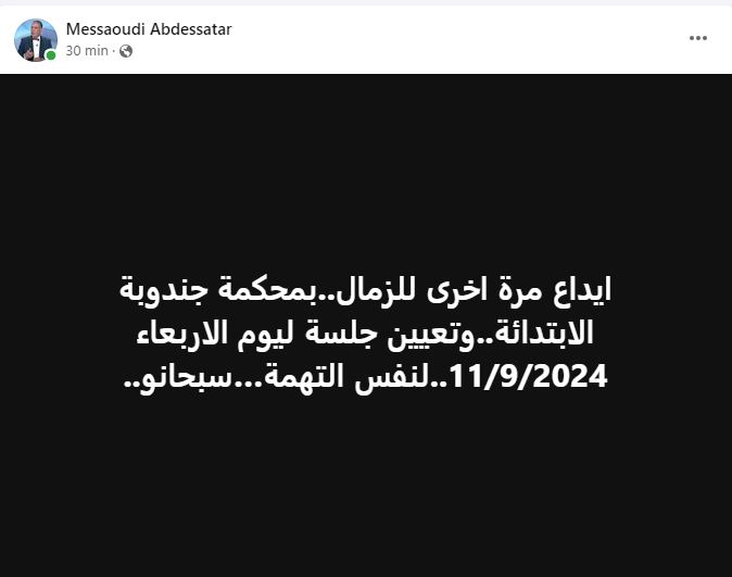 كشف المحامي عبد الستار المسعودي رئيس هيئة الدفاع عن المترشح للانتخابات الرئاسية العياشي زمال، في تدوينة على صفحته بالفايسبوك، بأنه قد تم إيداع موكله مرّة أخرى السجن وتعيين جلسة جديدة يوم الأربعاء المقبل.