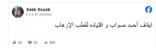 وطنية: تم اليوم الاثنين 21 أفريل 2025، إيقاف المحامي والقاضي السابق أحمد صواب واقتياده لقطب الإرهاب، وفق تدوينة نشره إبنه صائب صواب. قراءة المزيد تم اليوم الاثنين 21 أفريل 2025، إيقاف المحامي والقاضي السابق أحمد صواب واقتياده لقطب الإرهاب، وفق تدوينة نشره إبنه صائب صواب.إيقاف ابنة فنانة شهيرة بعد شكوك في قتل والدتهاإيقاف أحمد نجيب الشابي تنفيذًا لحكم نهائيإيقاف المتورطين في تخريب عربتي مترو للخط رقم 5 (صور)المزيد من الأخبار