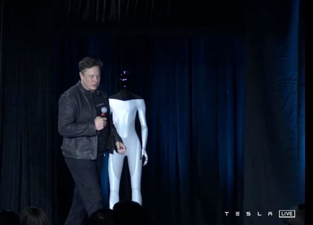 وأضاف ماسك: «نحن أيضا جيدون في أجهزة الاستشعار والبطاريات، ومن المحتمل أن يكون لدينا نموذج أولي العام المقبل يبدو مثل هذا»، في إشارة إلى شخص يرتدي بدلة جسم مصممة ليبدو كأنه روبوت تسلا. وأشار ماسك إلى أن الممثل لم يكن روبوتا حقيقيا، لكن «تسلا بوت سيكون حقيقيا».