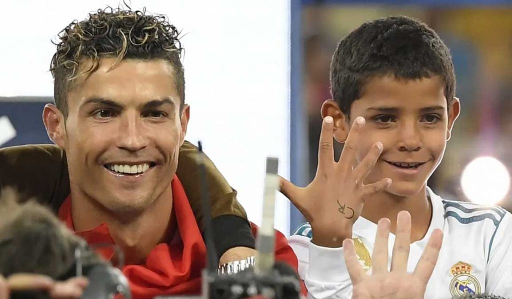 وظهر جونيور مرتديا سترة رياضية من شركة “نايكي” الأميركية، التي يمثلها رونالدو، وجوارب وحذاء من شركة أديداس، المنافس الأول لنايكي.