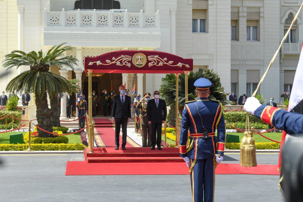 التقى رئيس الجمهورية قيس سعيد، صباح اليوم السبت 10 أفريل 2021، بالرئيس المصري عبد الفتاح السيسي. وجرت لرئيس الدولة مراسم استقبال رسمية بقصر الاتحادية بالقاهرة تم خلالها عزف النشيدين الرسميين للبلدين واستعراض تشكيلة من الحرس الرئاسي المصري.