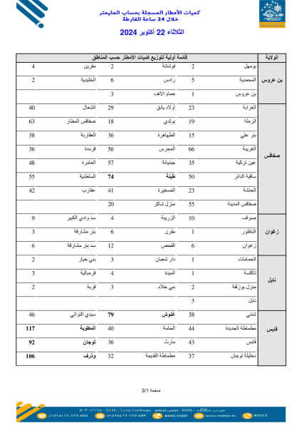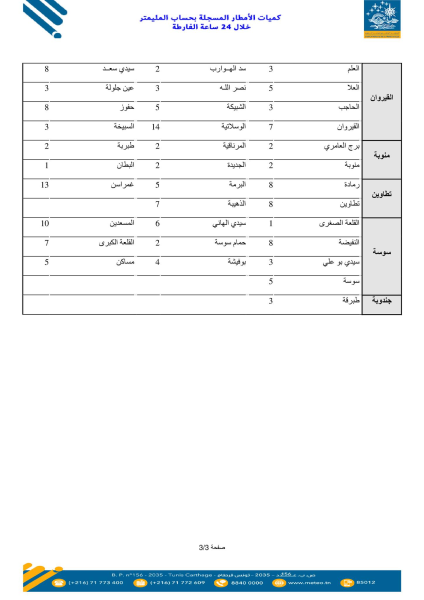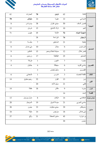 وطنية: أعلن المعهد الوطني للرصد الجوي اليوم الثلاثاء 22 أكتوبر، أن أعلى كميات الأمطار المسجلة خلال الـ 24 ساعة الفارطة كانت في معتمدية المطوية من ولاية قابس. قراءة المزيد أعلن المعهد الوطني للرصد الجوي اليوم الثلاثاء 22 أكتوبر، أن أعلى كميات الأمطار المسجلة خلال الـ 24 ساعة الفارطة كانت في معتمدية المطوية من ولاية قابس. وبلغت هذه الكمية وفق ذات المصدر 117 مليمترا.أعلاها ببني مطير.. كميات الامطار المسجلة يوم 26 نوفمبركميات أمطار يوم 11 ماي 2025كميات امطار 5 ماي 2025المزيد من الأخبار