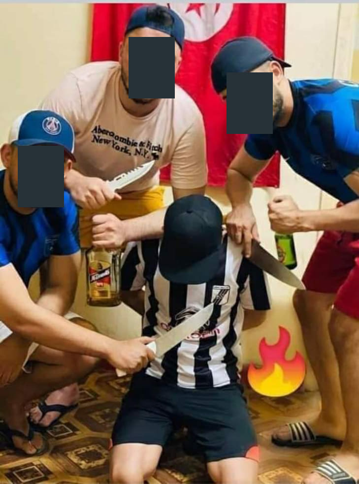 1 وانتشرت صورة تم تداولها على نطاق واسع على موقع “الفايسبوك”بقيام 4 شبان في “مزحة ثقيلة”، يشهر 3 منهم السكاكين في وجه رابعهم، الذي ارتدى قميص النادي الرياضي الصفاقسي.سيواجه نادي الأولمبي للنقل النادي الرياضي نظيره الصفاقسي، يوم 18 جوان الجاري، لحساب نصف نهائي كأس تونس لكرة القدم.