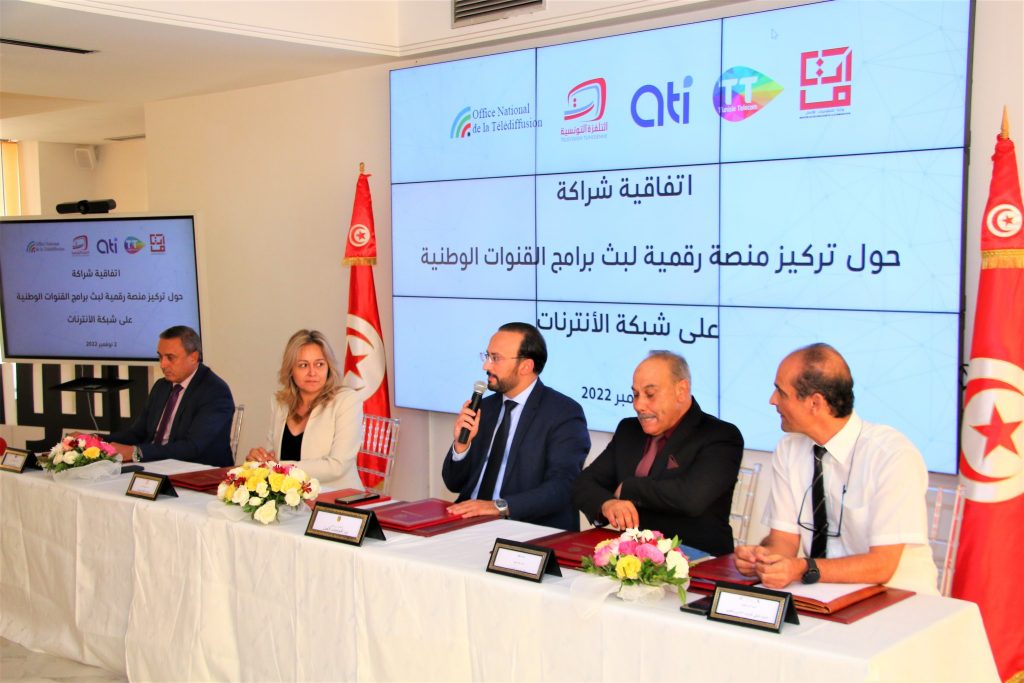 وأشرف وزير تكنولوجيات الاتصال نزار بن ناجي على إمضاء اتفاقية بحضور المكلفة بتسيير مؤسسة التلفزة التونسية الوطنية، عواطف الدالي والمدير العام للوكالة التونسية لأنترنات، محمد منيف والرئيس المدير العام لشركة اتصالات تونس، لسعد بن ذياب الرئيس ومدير الشبكات بالديوان الوطني للإرسال الإذاعي والتلفزي، كمال حاج عمار.