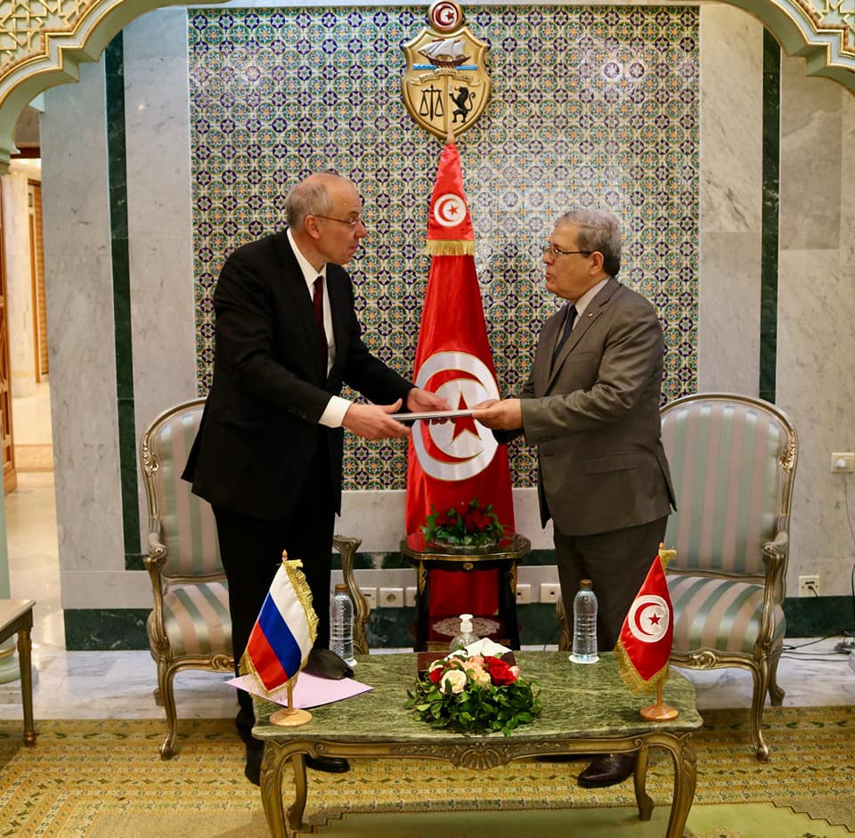 تسلم وزير الشؤون الخارجية والهجرة والتونسيين بالخارج، عثمان الجرندي، مساء الجمعة من ألكسندر زولوتوف، نسخة من أوراق اعتماده سفيرا لجمهورية روسيا الاتحادية بتونس.