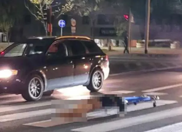 ونشرت وسائل إعلام محلية صورة للجثة ملقاة على معبر للمشاة مخطط باللون الأبيض حيث سقطت من السيارة الجنائزية.