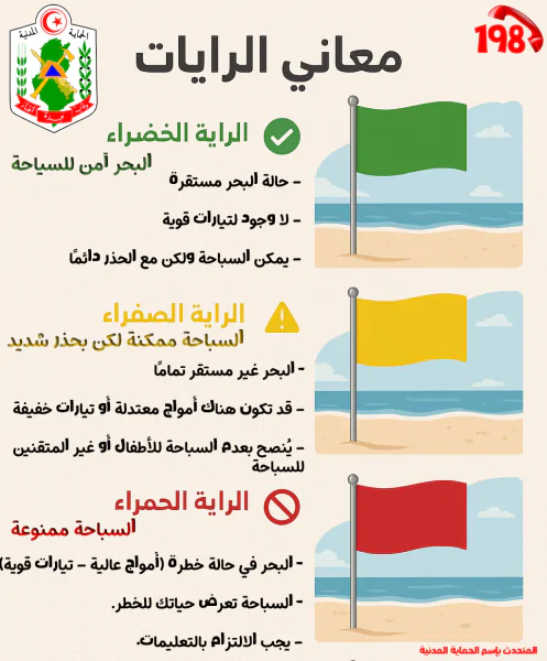 حذّرت الحماية المدنية من التيارات الساحبة، وهي تيارات مائية قويّة وغير مرئية تسحب السباحين بشكل مفاجئ من الشاطئ نحو عرض البحر، ما يُمثّل خطرًا حقيقيًا على حياتهم