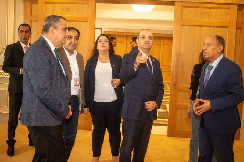 وقد كان رئيس الهيئة مرفوقا في هذه الزيارة بمحمد نوفل الفريخة نائب رئيس الهيئة ونجلاء عبروقي، وبلقاسم العياشي عضوا مجلس الهيئة حيث تجول في مختلف الفضاءات بقصر المؤتمرات وعاين بالخصوص الأشغال الجارية لتهيئة القاعــــة الكبرى التي ستحتضن جلسة الافتتاح والندوات الصحفية وستكون المنبر الرئيسي للتواصل مع الضيوف وممثلي وسائل الإعـــــــــلام والجمعيات والمنظمات التي تعنى بالانتخابات وأكد بهذه المناسبة حرص مجلس الهيئة على الاستعداد الجيد لهذا الحدث الوطني الهام وضمان كافة المتطلبات التنظيميـــــــــة والحاجيات اللوجستية ليكون المركز الإعلامي على أتم الجاهزية يوم الافتتاح.
