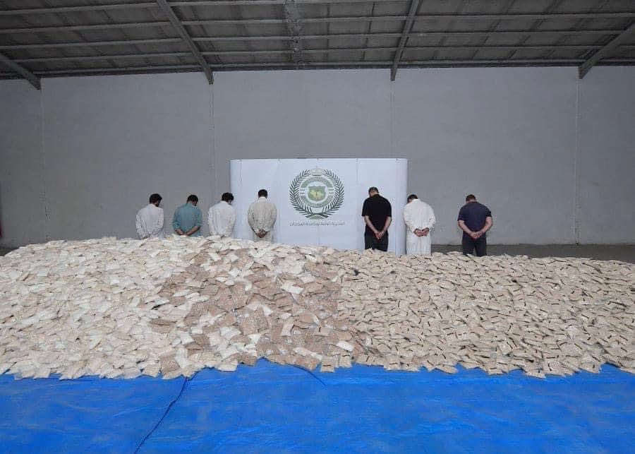 وتمت مداهمة الموقع والقبض على المشاركين في تهريبها وعددهم (8) مقيمين، (6) من الجنسية السورية و(2) من الجنسية الباكستانية، بحوزتهم (46,916,480) قرصًا من مادة الإمفيتامين المخدر مخبأة داخل شحنة طحين، وذلك بالتنسيق مع هيئة الزكاة والضريبة والجمارك. وجرى إيقاف المتهمين واتخاذ الإجراءات النظامية الأولية بحقهم وإحالتهم إلى النيابة العامة.