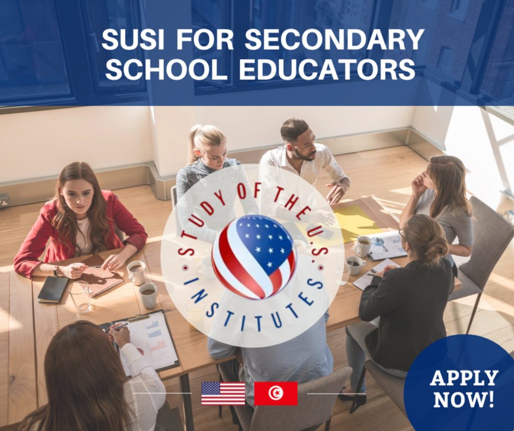 أعلنت السفارة الأمريكية بتونس في بلاغ لها على صفحتها الرسمية بفيسبوك عن فرصة جديدة لأساتذة التعليم الثانوي أو الإداريين التونسيين (بما في ذلك مدربي المعلمين، مطوري المناهج، مؤلفي الكتب المدرسية، مسؤولي وزارة التربية، وغيرهم)! برنامج SUSI for Secondary School Educators مفتوح الآن لتقديم الترشّحات.