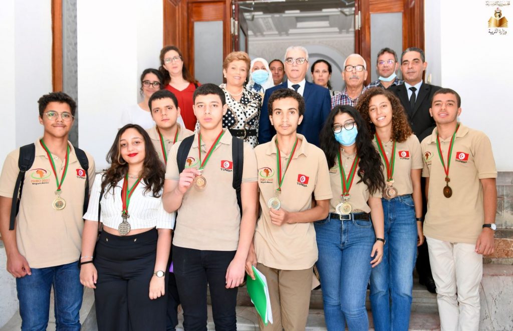 كرّم وزير التّربية فتحي السلّاوتي، اليوم الاثنين، التلاميذ المتوجين في الدورة 29 للأولمبياد الإفريقية للرياضيّات التي إنتظمت بالمغرب أيام 19 إلى 28 جوان 2022 حيث تحصل الفريق الوطني على المرتبة الأولى إفريقيّا وعدد 03 ميداليات ذهبية وعدد 04 ميداليات فضيّة وعدد 05 ميداليات برونزيّة. وتحصّلت التلميذة ياسمين الزاهي على لقب ملكة الرياضيات بإفريقيا، بالإضافة إلى تكريم كل من الجمعية التّونسية لمسابقات وثقافة الرياضيات، والجمعية التّونسية للعلوم الرياضية.