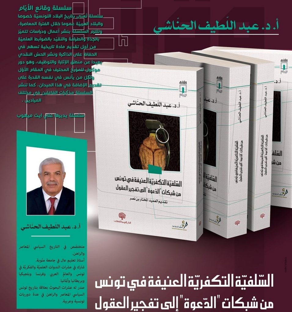 صدر عن الدار التونسية للكتاب للاستاذ الجامعي الدكتور عبد اللطيف الحناشي المتخصص في التاريخ المعاصر كتاب «السلفية التكفيرية في تونس من خيم الدعوة الى تفجير العقول».