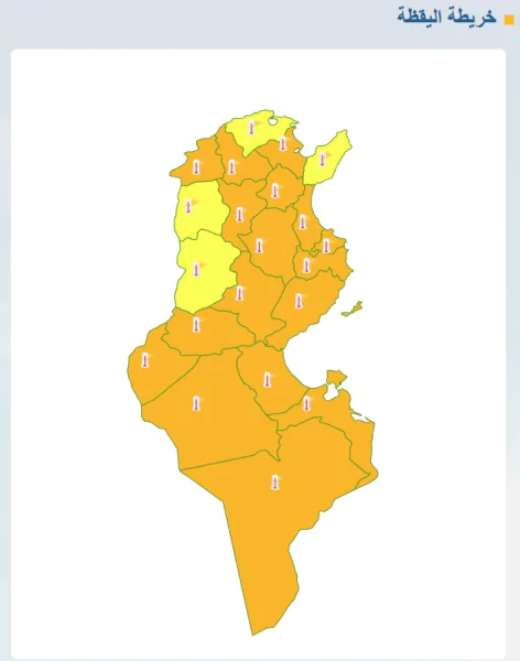 وطنية: وحسب آخر تحيين لخريطة اليقظة، أسند المعهد الوطني للرصد الجوي اللون البرتقالي لأغلب ولايات الجمهورية وهو ما يستوجب اليقظة التامة واتباع جملة من التوصيات توقيا من حرارة الشمس.