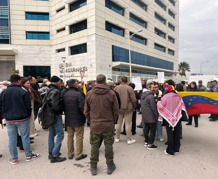نظمت الشبكة التونسية للتصدي لمنظومة التطبيع، اليوم الجمعة، وقفة تضامنية أمام مقر سفارة فنزويلا بالعاصمة، تأكيدًا على دعم الشعب الفنزويلي وإدانة الهجوم الأمريكي الأخير.