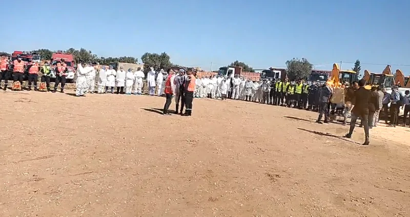 تفكيك وإزالة وتعقيم خيام مهاجرين غير نظاميين من دول جنوب الصحراء بهنشير القرقني من معتمدية العامرة من ولاية صفاقس