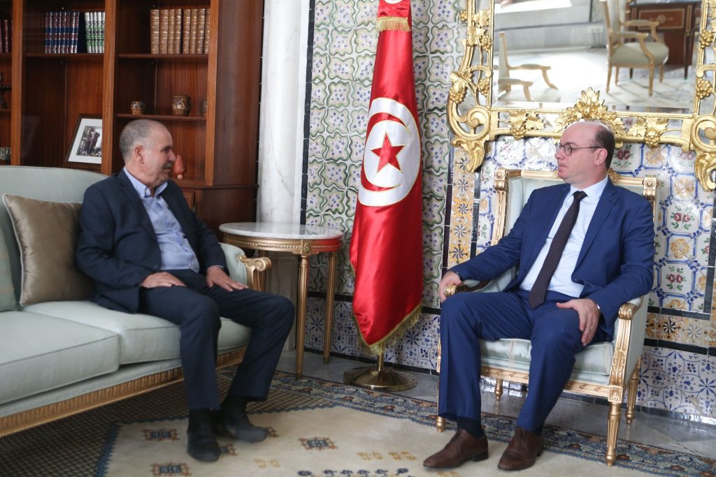 استقبل رئيس الحكومة إلياس الفخفاخ صباح اليوم الاثنين 17 أوت 2020 بقصر الحكومة بالقصبة الأمين العام للاتحاد العام التونسي للشغل نور الدين الطبوبي الذي كان مصحوبا بكل من محمد الصغير الميراوي الكاتب العام للاتحاد الجهوي للشغل بقفصة والبرني خميلة الكاتب العام للجامعة العامة للنفط والمواد الكيمياوية.