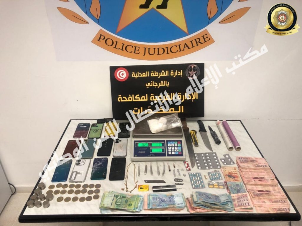 تمكن إطارات وأعوان الإدارة الفرعية لمكافحة المخدرات بإدارة الشرطة العدلية بمشاركة وحداتها المركزية والجهوية بالتنسيق مع النيابة العمومية بالمحكمة الابتدائية بالقيروان من القبض على العناصر الاجرامية الخطيرة المفتش عنها والمندمجين في مجال المخدرات بجهة القيروان حيث أسفرت عن النتائج التالية :