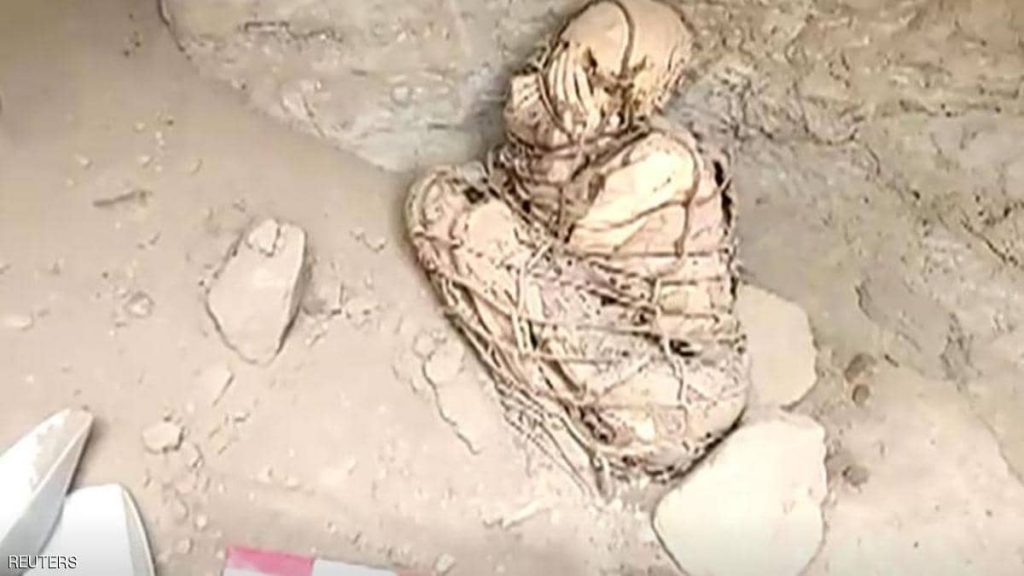 وأضاف أنه تم العثور على المومياء داخل مقبرة تحت الأرض في أطراف مدينة ليما، مشيرا إلى أن المقبرة كانت تضم أيضا قرابين تشمل قطعا من الخزف وبقايا نباتات وأدوات حجرية، وفق ما ذكرت “رويترز”.