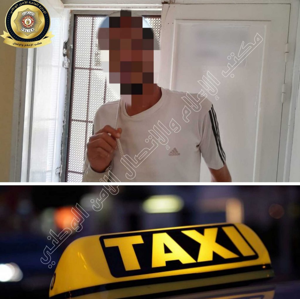بالتنسيق مع النيابة العمومية تم التحوّل إلى منزل المعني والقبض عليه، بعرضه على المتضرر تعرّف عليه من الوهلة الأولى مؤكدا أنه من قام بالصعود على متن سيارته كحريف بالمقاعد الخلفية وتهديده بواسطة آلة حادة والإعتداء عليه بواسطتها وسرقة مبلغ مالي قدره 80 دينار وهاتفه الجوال ثم عمد إلى الفرار على متن سيارته الخاصة.