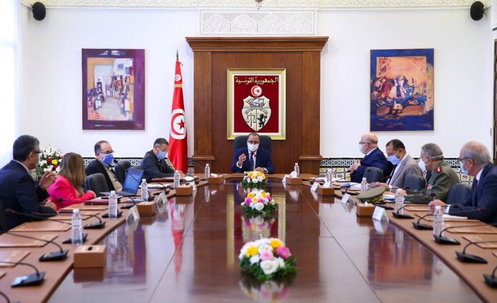 أشرف رئيس الحكومة هشام المشيشي صباح اليوم الأربعاء 4 نوفمبر 2020 على جلسة عمل وزارية بحضور كلّ من وزير الداخلية توفيق شرف الدين ووزير الصحة فوزي مهدي ووزير الشؤون الاجتماعية محمد الطرابلسي وعدد من أعضاء اللجنة العلمية لمتابعة انتشار فيروس كورونا.