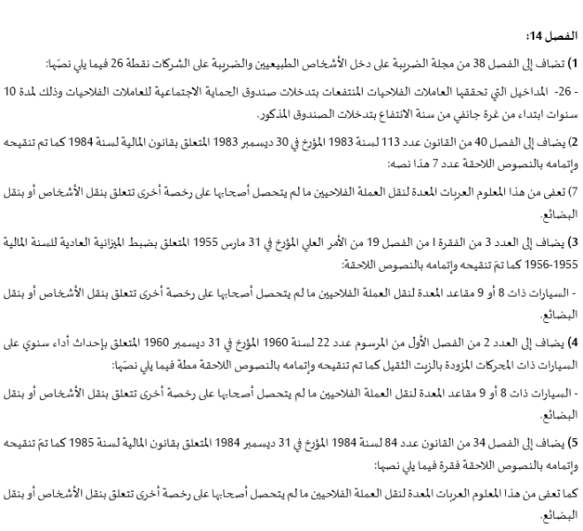 تعديل الفصل 14 من مشروع قانون المالية 2025 والمتعلق بمدة اعفاء العاملات الفلاحيات من الضريبة على الدخل، وذلك بـموافقة 110 نائبا و4 احتفاظ و2 رفض