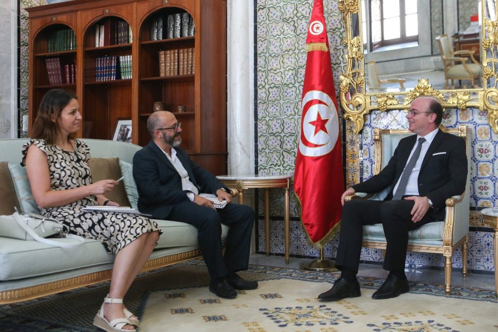 استقبل رئيس حكومة تصريف الأعمال إلياس الفخفاخ ظهر اليوم الأربعاء 29 جويلية 2020 بقصرالحكومة بالقصبة رئيس هيئة المهندسين المعماريين محمد الصحبي قرجي والكاتبة العامة للهيئة ريم زعبار.