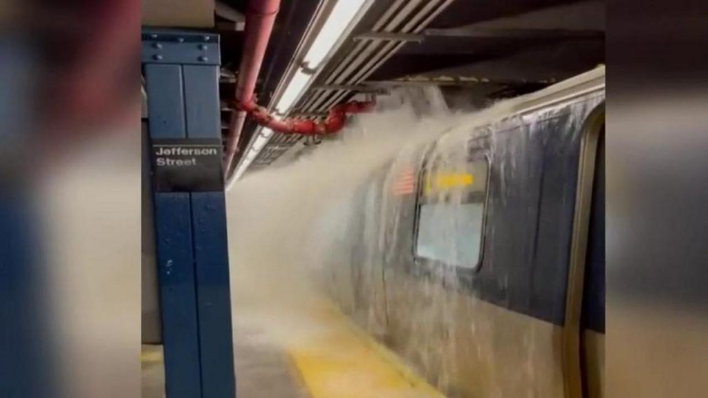 أظهر مقطع فيديو تدفق مياه الأمطار إلى محطة مترو مدينة نيويورك يوم الخميس، حيث غمرت الشوارع والطوابق الأولى من المباني ومترو الأنفاق في المدينة.
