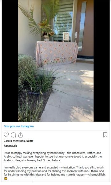 ونشرت الفنانة على حسابها بموقع “إنستغرام” مقطع فيديو أظهر مجموعة من الرسائل المطبوعة على أوراق مزينة وضعتها على طاولة أمام باب بيتها.