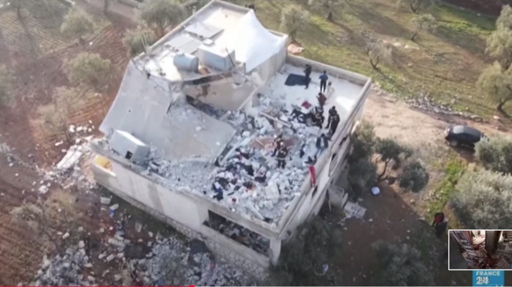 لكن قبل أن تتمكن تلك القوات من الوصول إليه، فجر الملقب بـ “أبو إبراهيم الهاشمي القرشي” قنبلة ما أدى لانفجار قوي قذف جثته وجثثا أخرى من المبنى إلى الشوارع المحيطة.