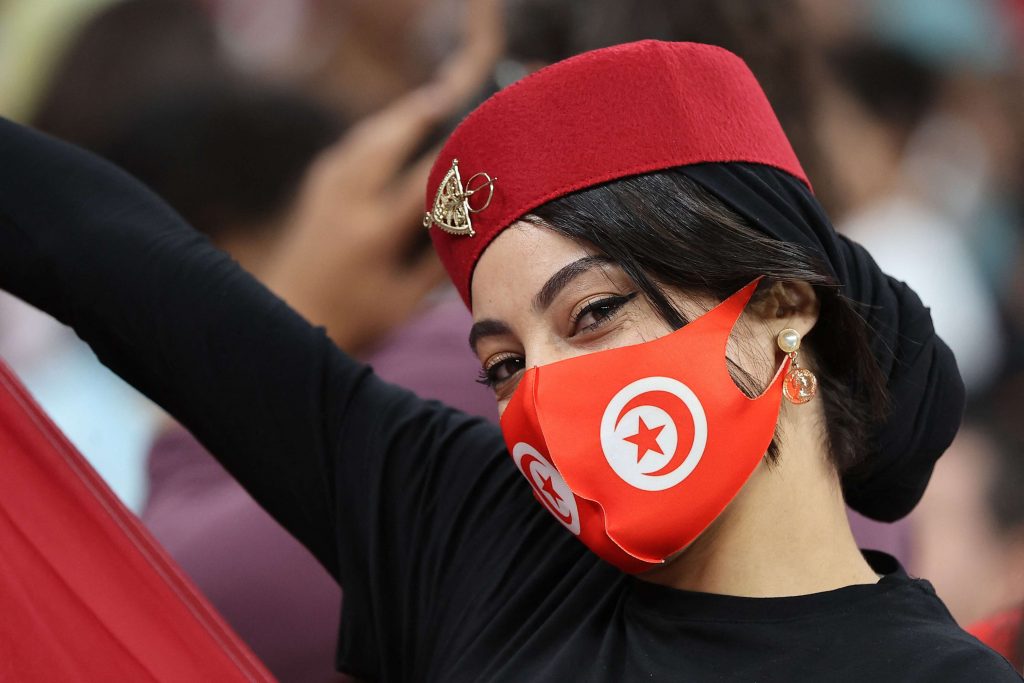 A Tunisia supporter poses for a picture ahead of the FIFA Arab Cup 2021 final football match between Tunisia and Algeria at the Al-Bayt stadium in the Qatari city of Al-Khor on December 18, 2021. (Photo by KARIM JAAFAR / AFP)