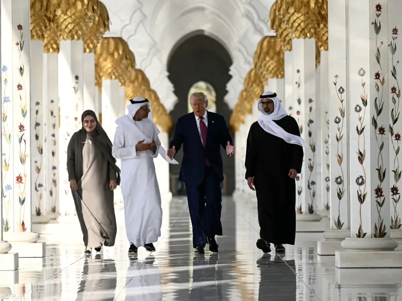 ورافق ترامب في زيارة المسجد ولي عهد أبوظبي الشيخ خالد بن محمد بن زايد آل نهيان.