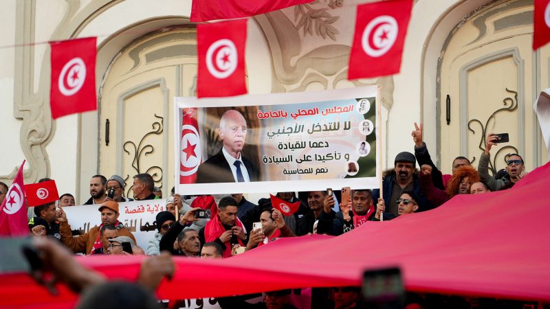 شهد شارع الحبيب بورقيبة بالعاصمة تونس، اليوم الأربعاء، تظاهرة حاشدة لأنصار الرئيس قيس سعيد، بمناسبة الذكرى 15 للثورة.