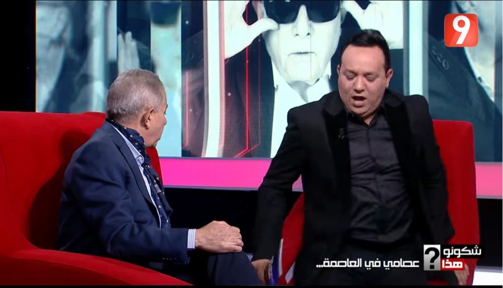 بالفيديو/ علاء الشابي يسقط من على الكرسي في أول حلقة من برنامجه الجديد وحسن بن عثمان “شامتا”: ربي طاح فيك !